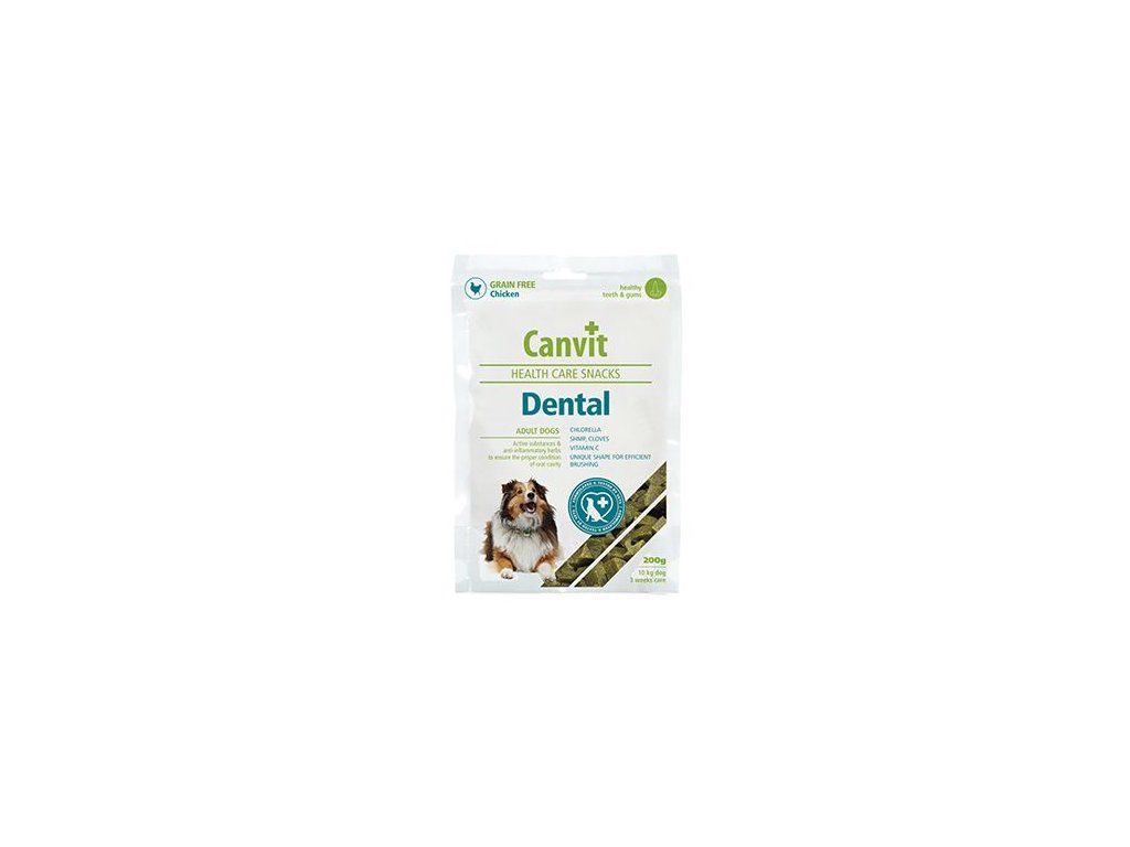 Měkké masové pochoutky bez obilovin pro zdravé zuby a dásně ve tvaru kostiček pro malé a střední psy. Canvit Dental jsou vhodné pro každodenní podávání u psů, kteří mají zubní plak, zapáchá jim z tlamy, trpí na záněty a krvácení dásní.