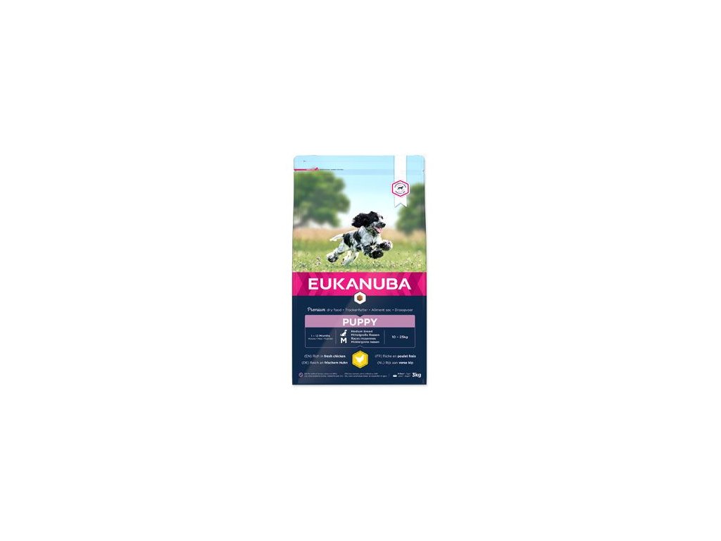 Štěňata středně velkých plemen mají vlastní výživové nároky. Tato strava Eukanuba dodává optimální množství proteinů, tuku a karbohydrátů na pokrytí těchto nároků. Poskytuje všechny důležité vitamíny a minerály nezbytné pro optimální růst. Obsahuje přísady vysoké kvality a velké množství živočišných proteinů, z nichž kuřecí maso představuje hlavní zdroj.