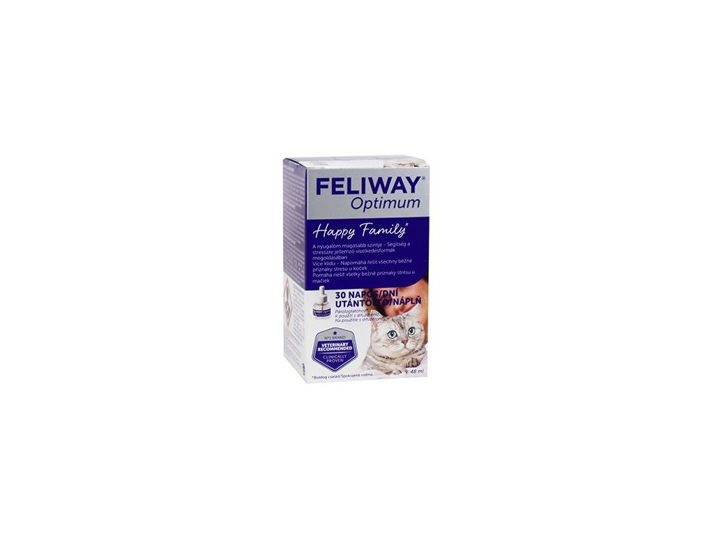 Kočky přirozeně uvolňují feromony, z nichž některé působí jako neviditelné zklidňující signály. FELIWAY Optimum obsahuje nejpokročilejší komplex kočičích feromonů, který vyvinuli členové výzkumného týmu FELIWAY. Nový komplex feromonů je zdrojem zklidňujících signálů, díky nimž se kočky cítí v domácím prostředí dobře. Tyto signály kočkám dodávají pocit jistoty a bezpečí a podporují harmonické vztahy mezi více kočkami v domácnosti.