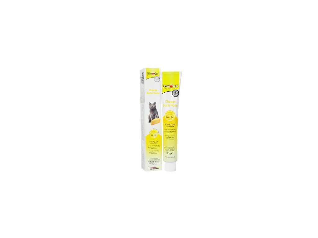 Biotinu se ne náhodou říká vitamín krásy. S pastou od Gimcat pomáhá tělu zachovávat sílu a vitalitu. Sýrová pasta bude oblíbeným pamlskem vaší kočky.
