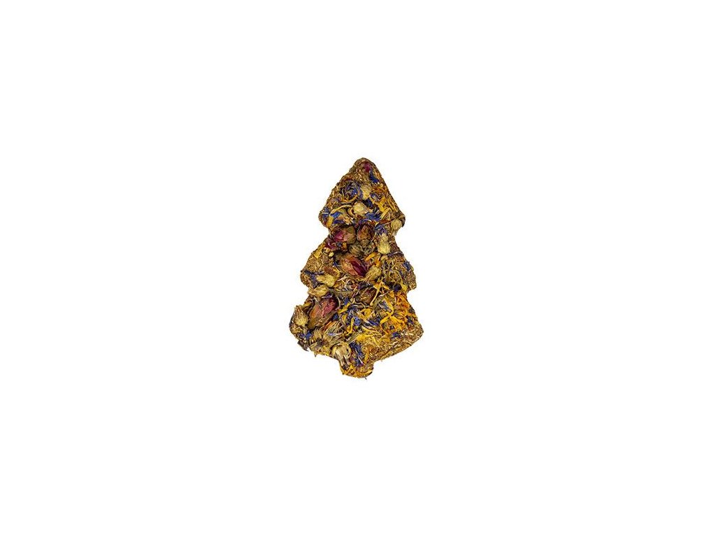 Bezobilný vánoční stromeček je z přírodních sušených ingrediencí jako je měsíček lékařský, chrpa a růže, které nejen krásně voní, ale také výborně chutnají.