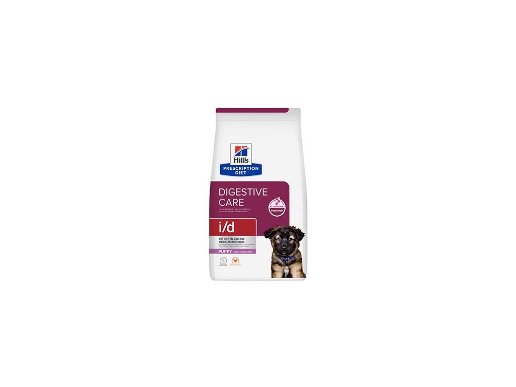 Hill's Prescription Diet i/d krmivo pro štěňata s kuřetem je velmi chutná, vysoce stravitelná klinická výživa speciálně vyvinutá tak, aby pomáhala zmírňovat zažívací potíže u štěňat. Toto suché krmivo pro psy obsahuje prebiotickou vlákninu a omega-3 a omega-6 mastné kyseliny. Dále obsahuje klinicky ověřené antioxidanty pro zdravý imunitní systém. Vysoká stravitelnost tohoto krmiva navíc pomáhá zajistit účinné vstřebávání živin. Krmivo Hill's Prescription Diet i/d obsahuje patentovanou směs prebiotické vlákniny ActivBiome+ Digestion, u které bylo klinicky ověřeno, že rychle vyživuje střevní mikrobiom, čímž podporuje optimální stolici a zdraví trávicího traktu. Splňuje speciální nutriční potřeby štěňat. Toto suché krmivo vyvinuté naším týmem nutričních specialistů a veterinářů je vyrobeno s kuřetem a má lahodnou chuť, kterou si vaše štěně zamiluje.